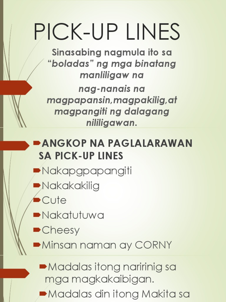 Tagalog Texts With Grammatical Analysis. (what pen did you use? This pick up line below might sound yucky but this is one of the funny tagalog pick up lines ever existed. Hinihintay lang kitang mahulog sa akin. Anong panulat ang gamit mo? Tagalog pick up lines pang asar pick up lines pinoy filipino pang asar pick up lines pinoy pick up lines pang asar pang inis. << we have over 150 categories of pick up lines on our main page! With these tagalog pick up lines, it shows that guys in the philippines are undeniably persistent and charming when working out for a girls attention. Cheesy tagalog pick up lines 2016 1) kumain ka ba ng asukal? Itim na nazareno ka ba? Here are the lists of tagalog pick up lines and pinoy funny english pick up lines courtesy gmanews tv. Ang lakas kasi ng sipa mo sa puso ko eh. Kasi, nasa iyo ang lahat ng hinahanap ko. Because i can't erase you from my mind.) bomba ka ba? Di kasi kita mabura sa isip ko eh. These are humorous lines that are usually used by one person to convey what he or she feels or want to say through comparisons.